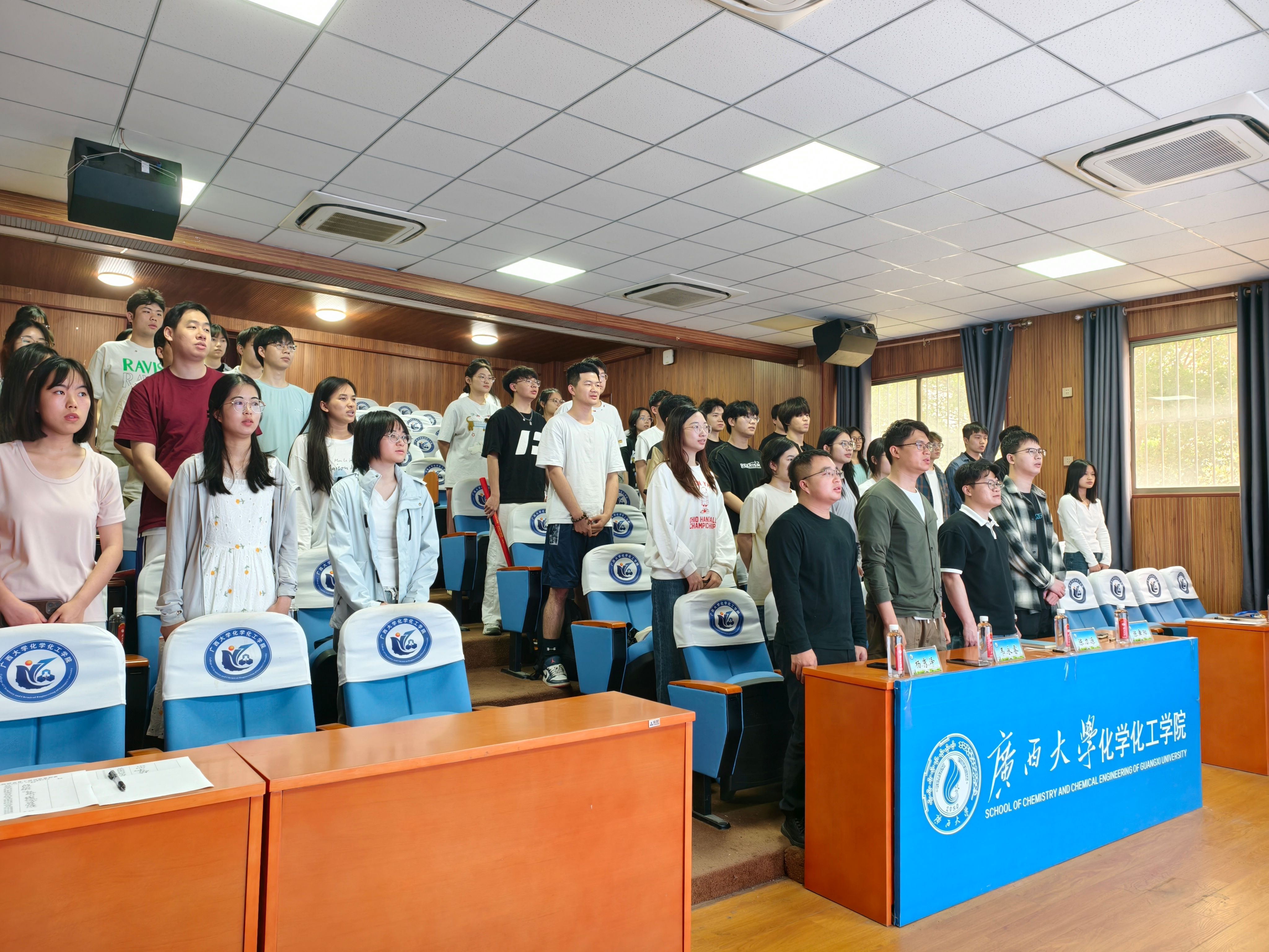 3月24日下午,化学化工学院研究生会第一届骨干培训班在学院一号楼碳酸钙报告厅举行开班仪式。我院团委副书记韦永睿,辅导员陈力源、杨秀泽、陈舞阳以及研究生会全体成员参加活动。