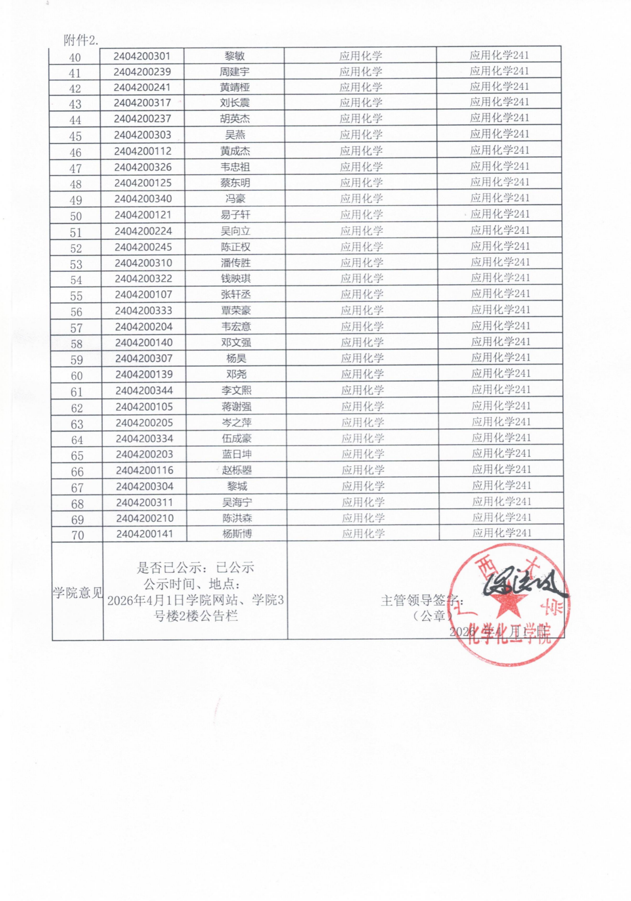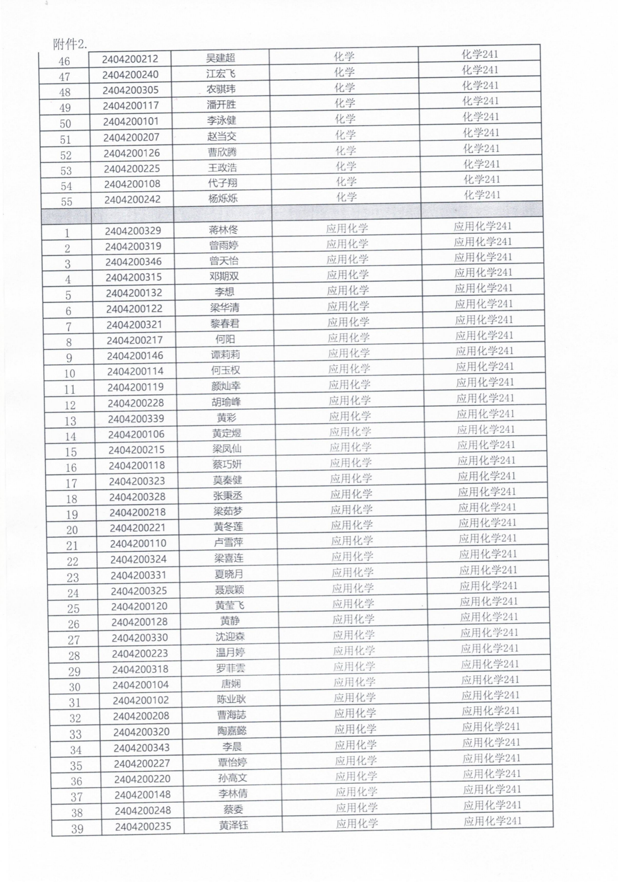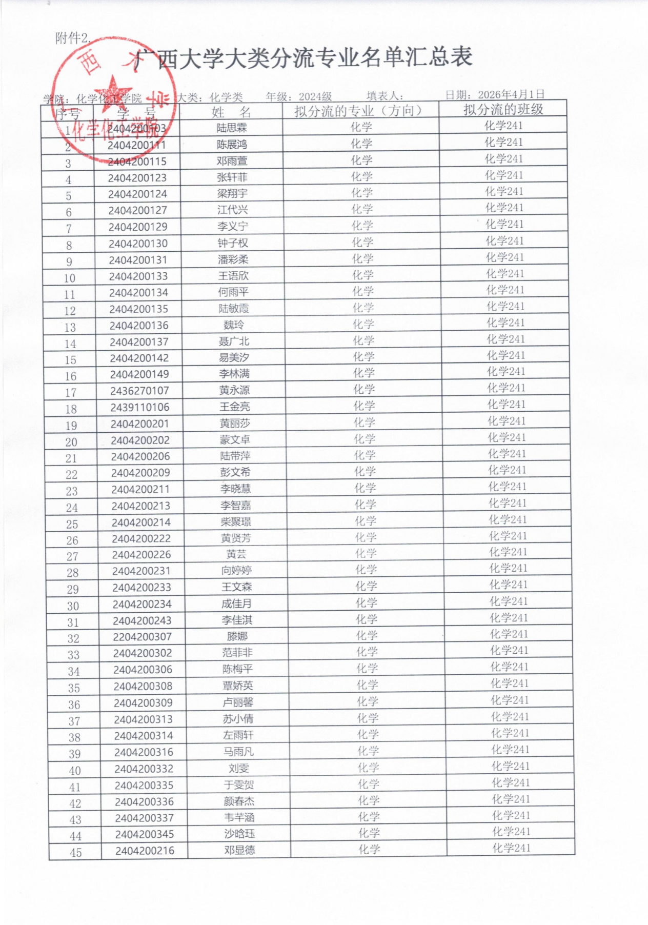 化学化工学院2024级化学类大类分流专业名单汇总表公示