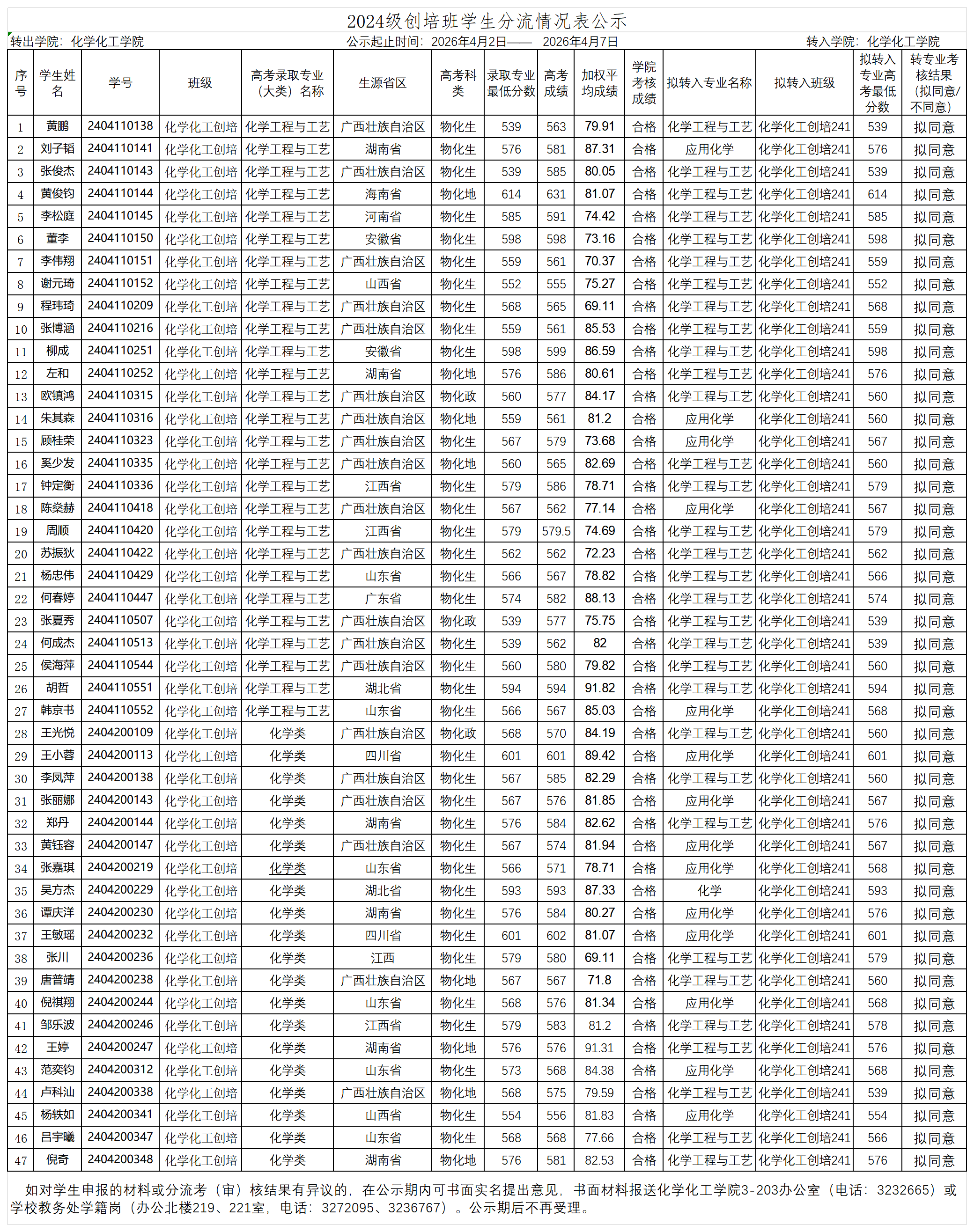 下一篇:化学化工学院2024级化学类大类分流专业名单汇总表公示
