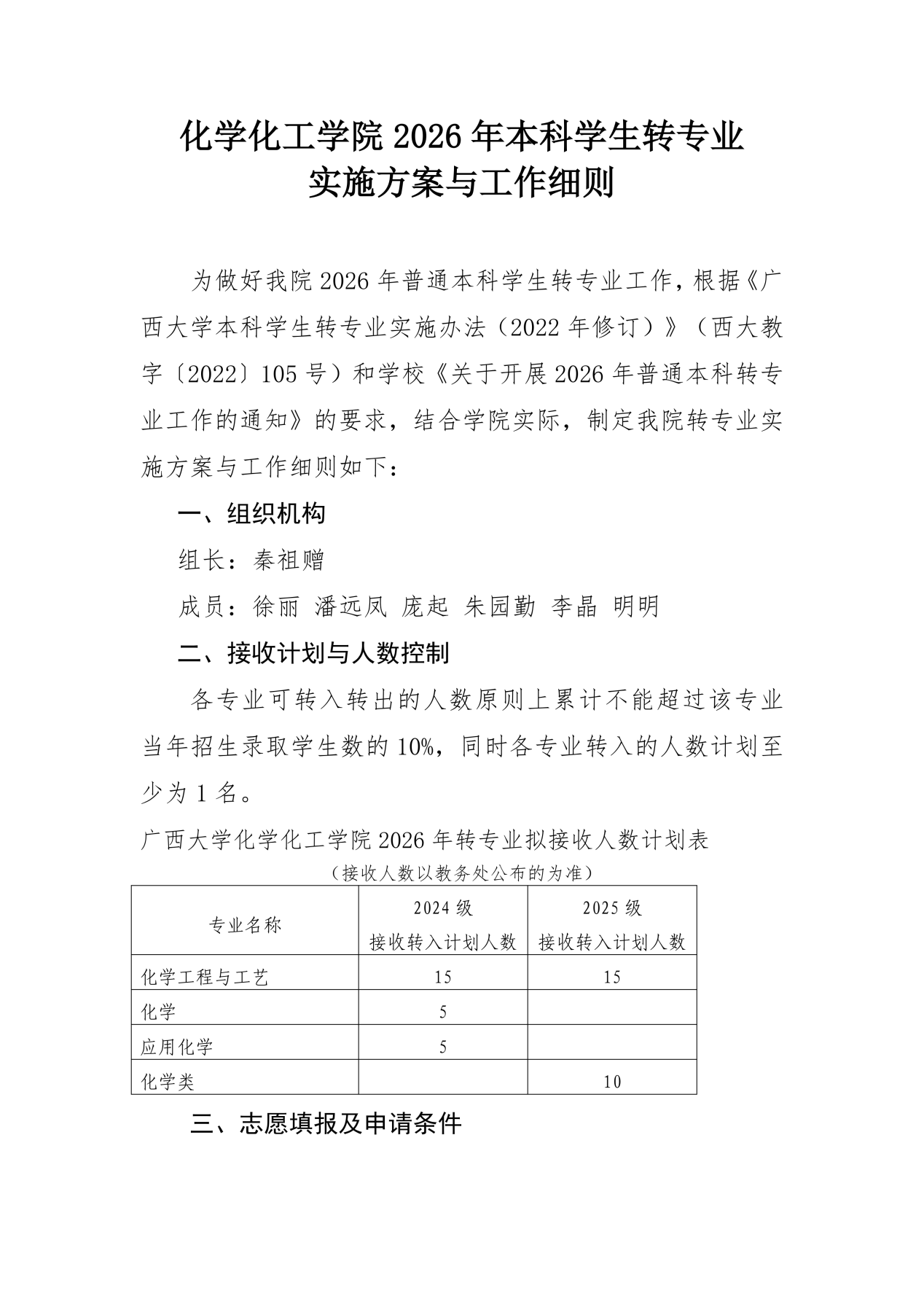 化学化工学院2026年本科学生转专业实施方案与工作细则