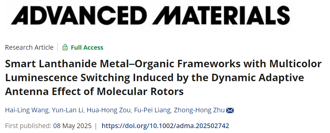 近日,我院助理教授朱忠洪团队在智能动态稀土发光配合物方面取得新进展。相关成果以Smart Lanthanide Metal–Organic Frameworks with Multicolor Luminescence Switching Induced by the Dynamic Adaptive Antenna Effect of Molecular Rotors为题,发表于材料化学领域国际学术期刊Advanced Materials。该论文的第一作者为我校化学化工学院助理教授汪海玲,唯一通讯作者为助理教授朱忠洪,广西大学是唯一通讯单位。
