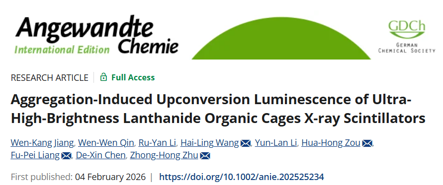近日,我院朱忠洪助理教授在稀土配合物上转换发光领域取得突破性进展。该成果以Aggregation-Induced Upconversion Luminescence of Ultra-High-Brightness Lanthanide Organic Cages X-ray Scintillators为题,发表于化学领域国际顶级学术期刊Angewandte Chemie International Edition (IF = 16.9)。我院朱忠洪助理教授、汪海玲助理教授、广西师范大学邹华红研究员以及广西师范大学梁福沛教授为共同通讯作者,广西大学为该论文的第一单位及第一通讯单位。