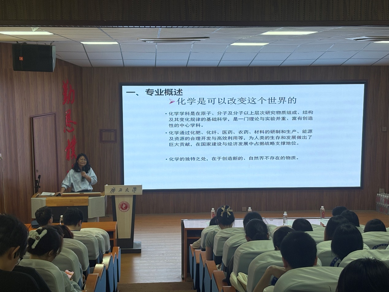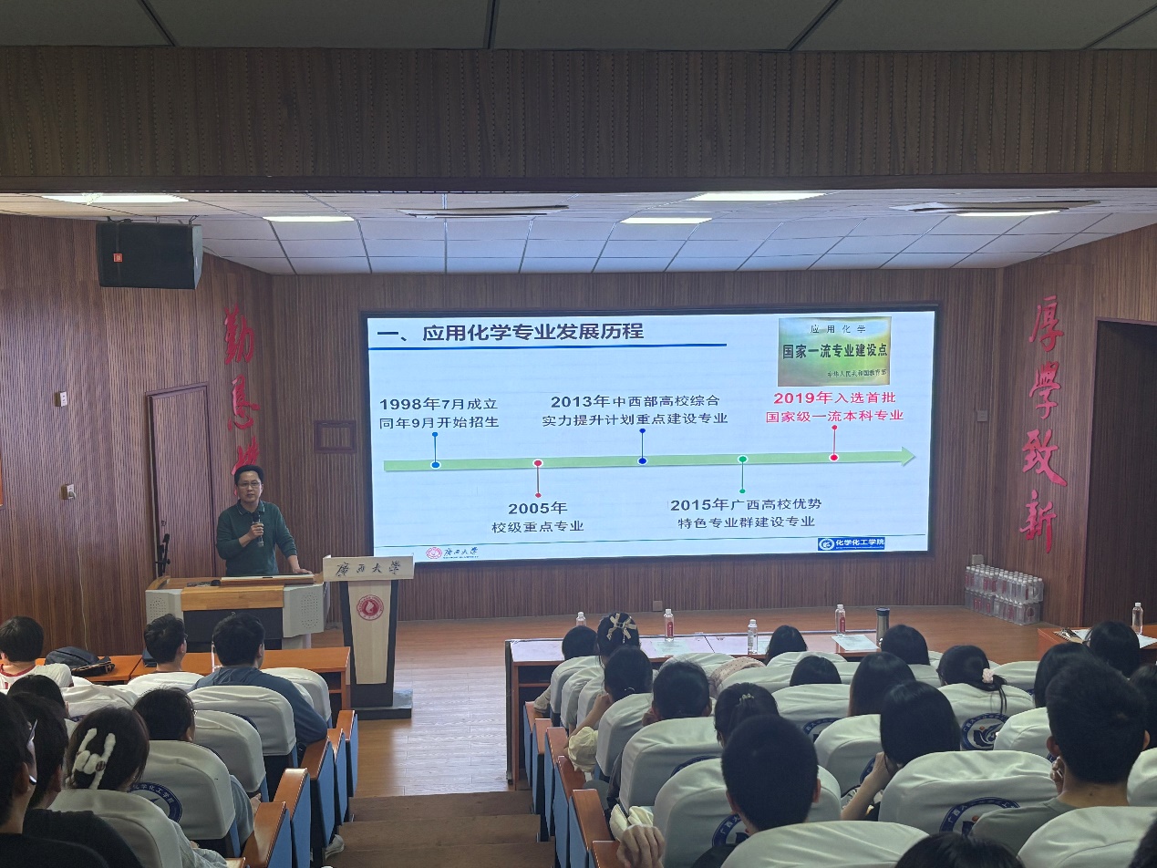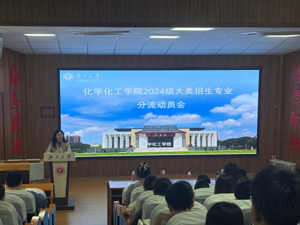 为有序推进大类招生专业分流工作,引导2024级本科生科学选择专业,3月24日下午,我院在学院1号楼碳酸钙报告厅召开了化学大类招生专业分流动员会。学院分管教学院长助理潘远凤和应用化学系主任朱园勤、化学系主任庞起、年级辅导员及全体2024级大类本科生参加会议。